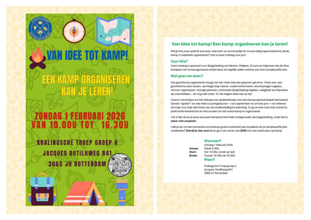 Inschrijven via deze pagina: https://scoutingacademyrijnmond.scouting.nl/activiteit/module-kamporganisatie/